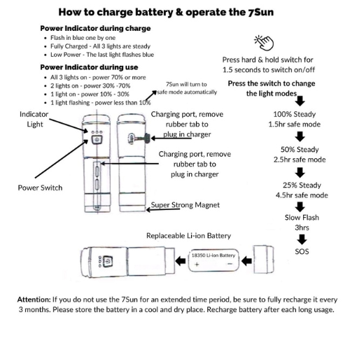 Safe mode: When the battery is low, it will turn to safe mode (50 lumens) automatically to ensure another 0.5 hours of runtime