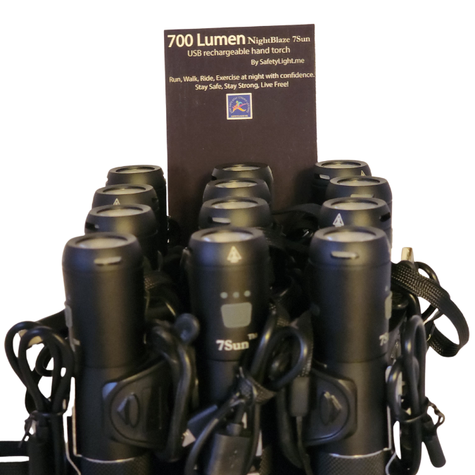 Case of 10 lights with bike mount includes a magnetic counter display plate